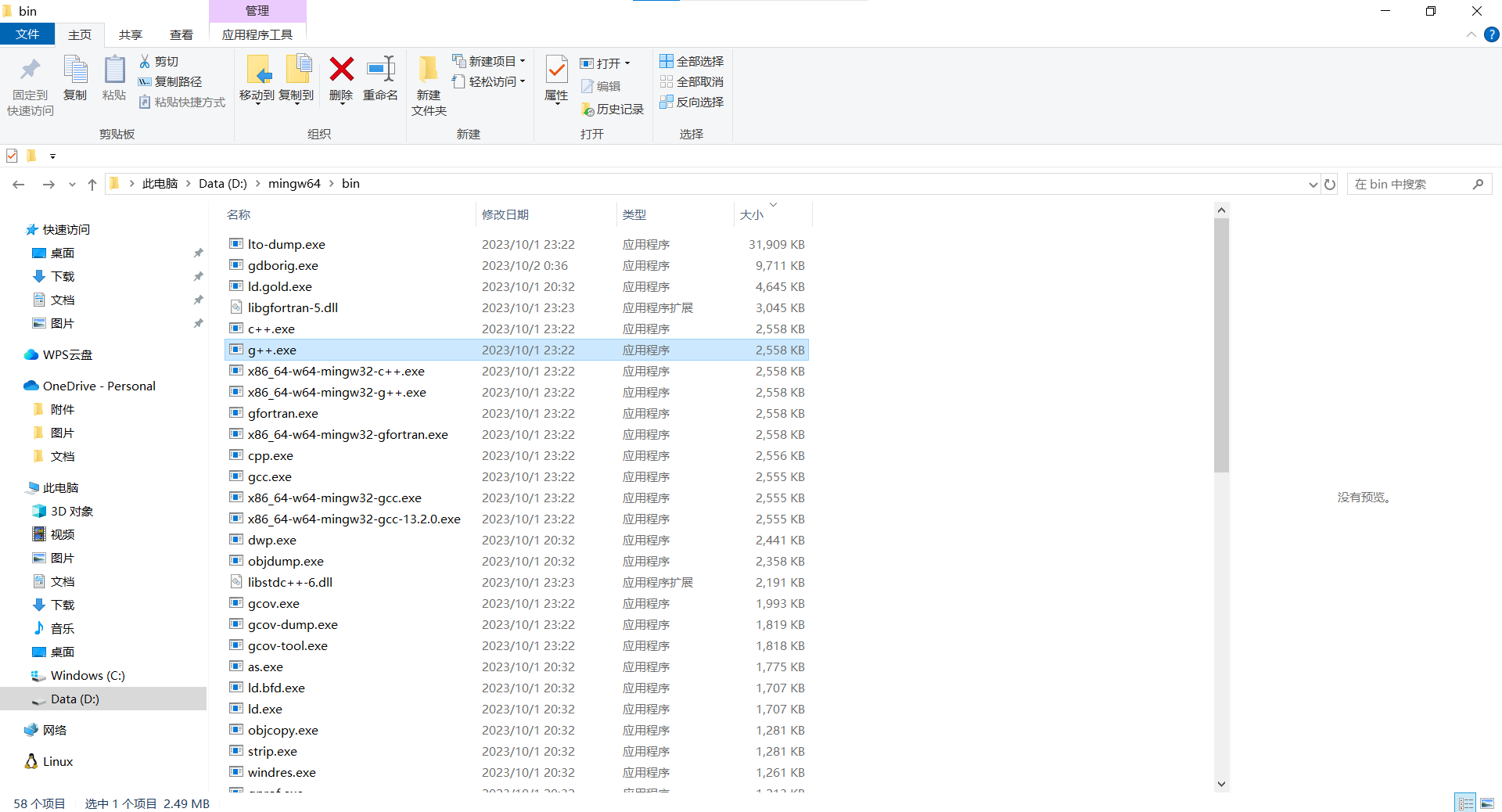 然后打开里面的子文件夹 bin,就能找到 g++.exe: