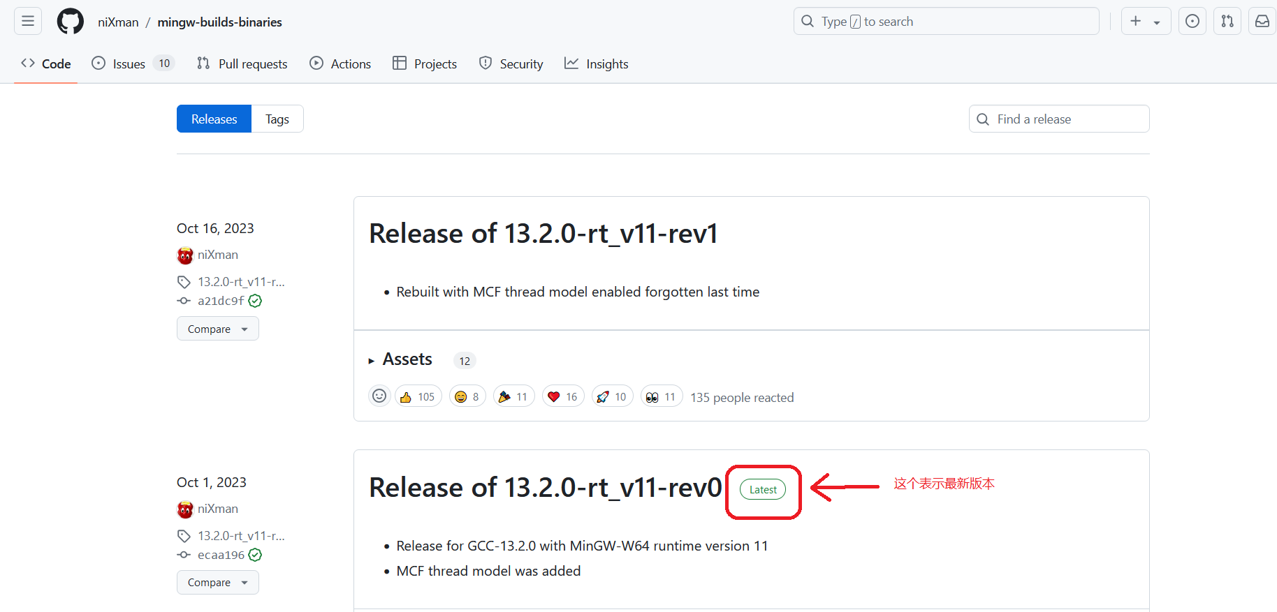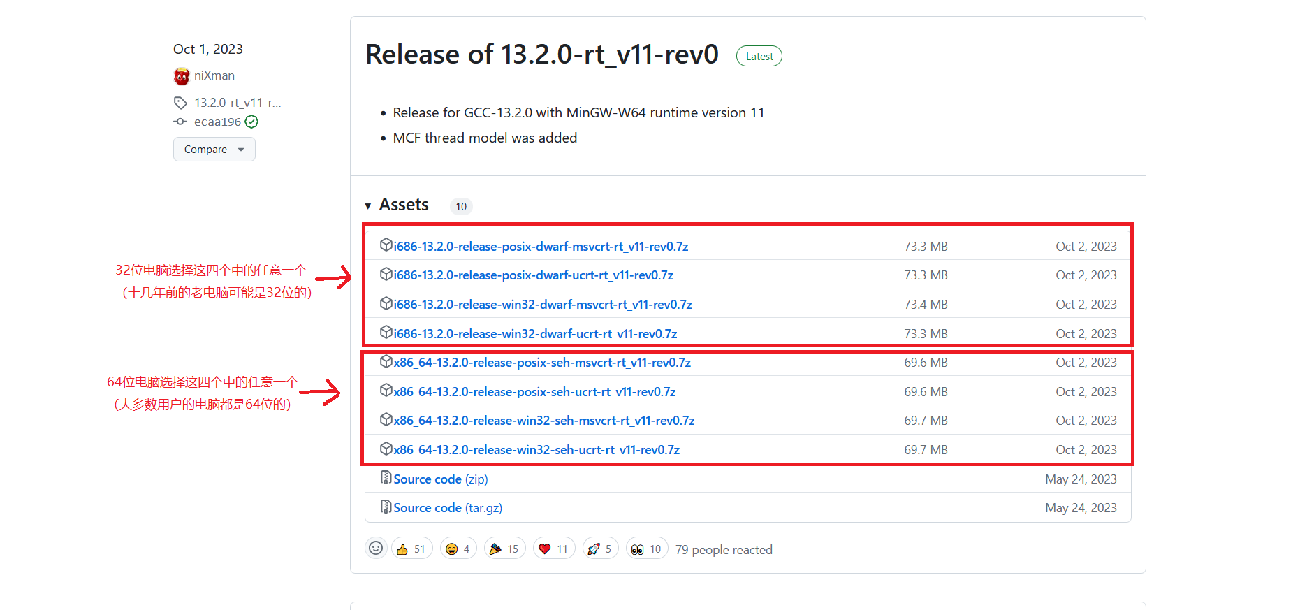 打开 MinGW-w64 官网 的 下载页面,如下图所示: