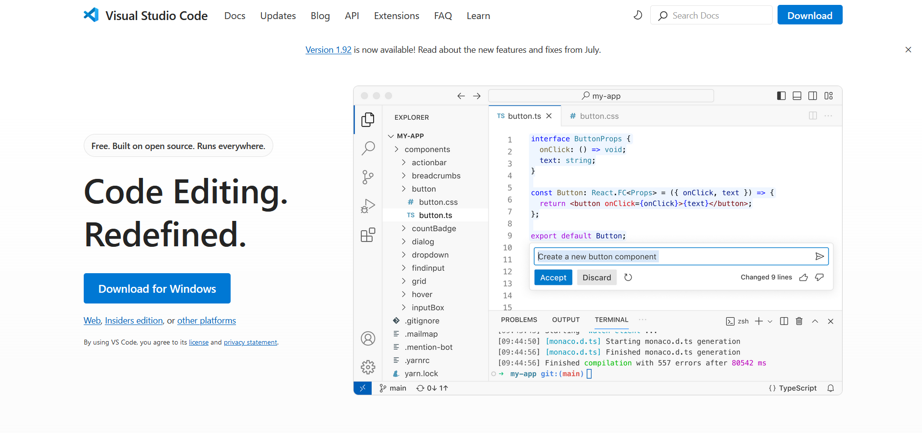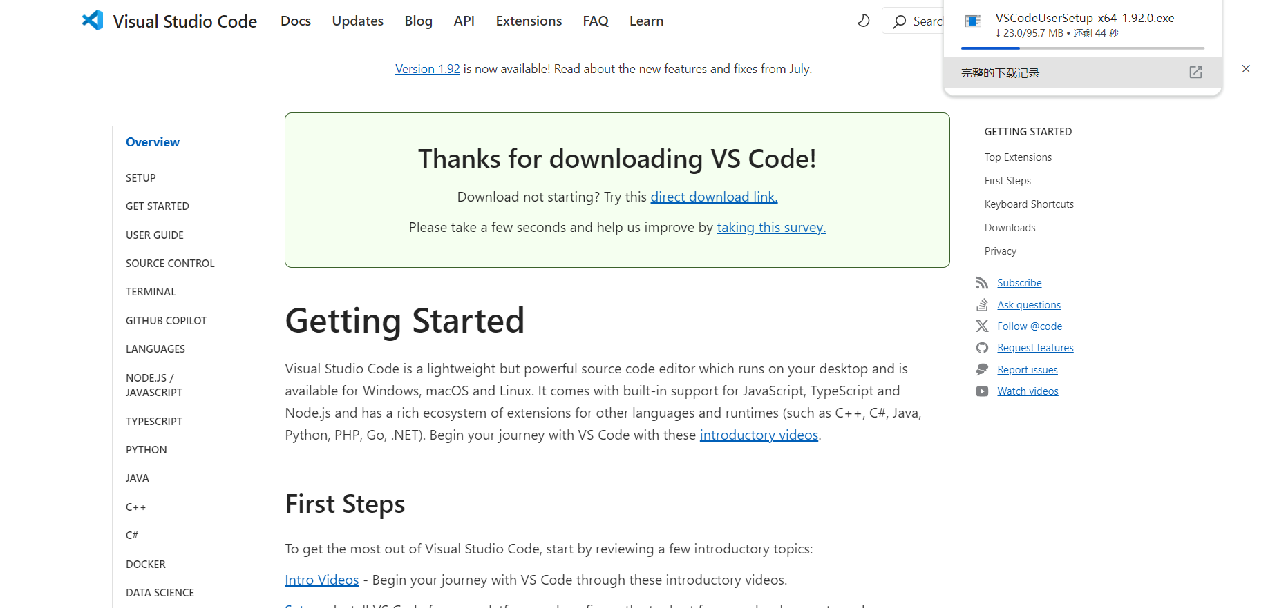 前往 Visual Studio Code 官网。你应该会看到和下图类似的页面: