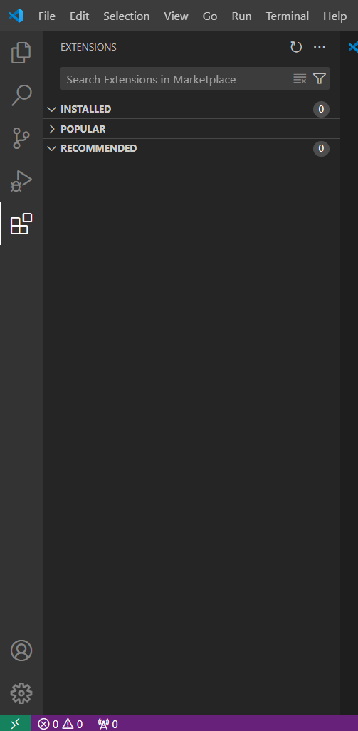 此时 vscode 的语言为英语。为了切换语言为中文,点击左侧的
